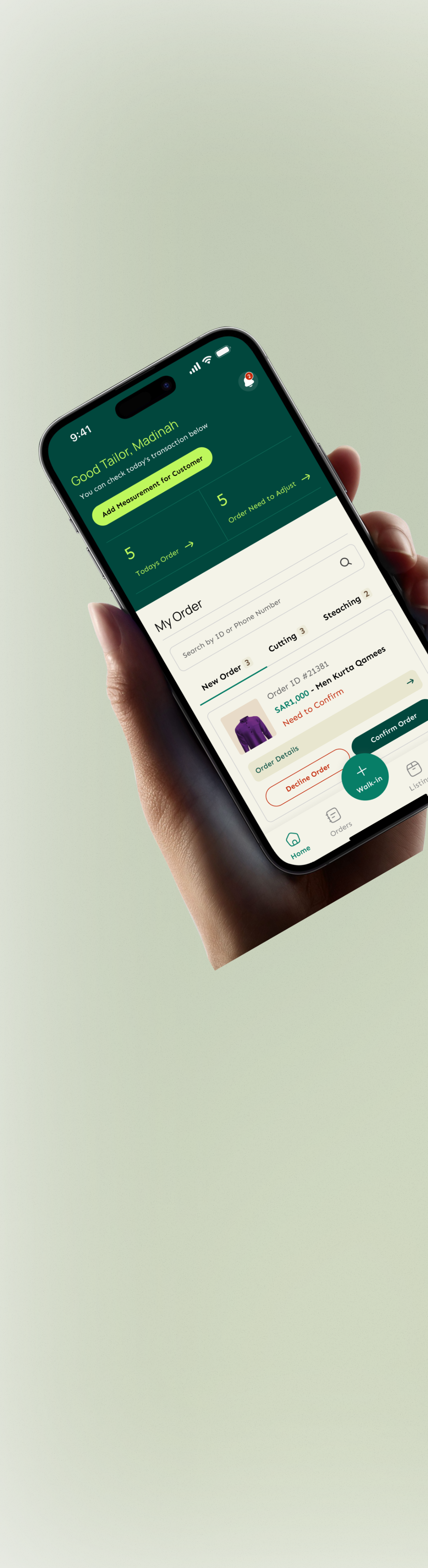 Find trusted local tailors, customize your garment, and track step all from your phone.