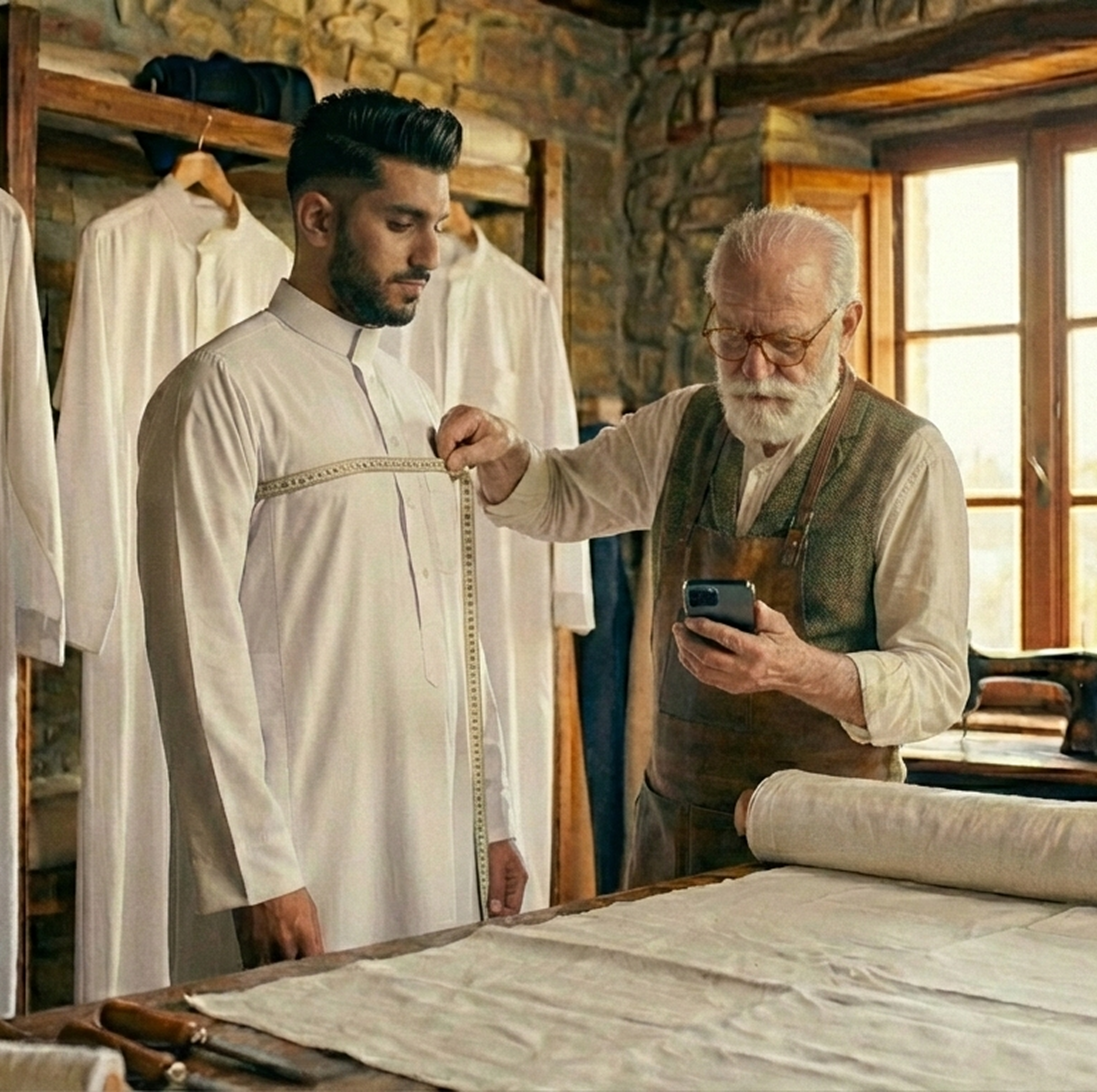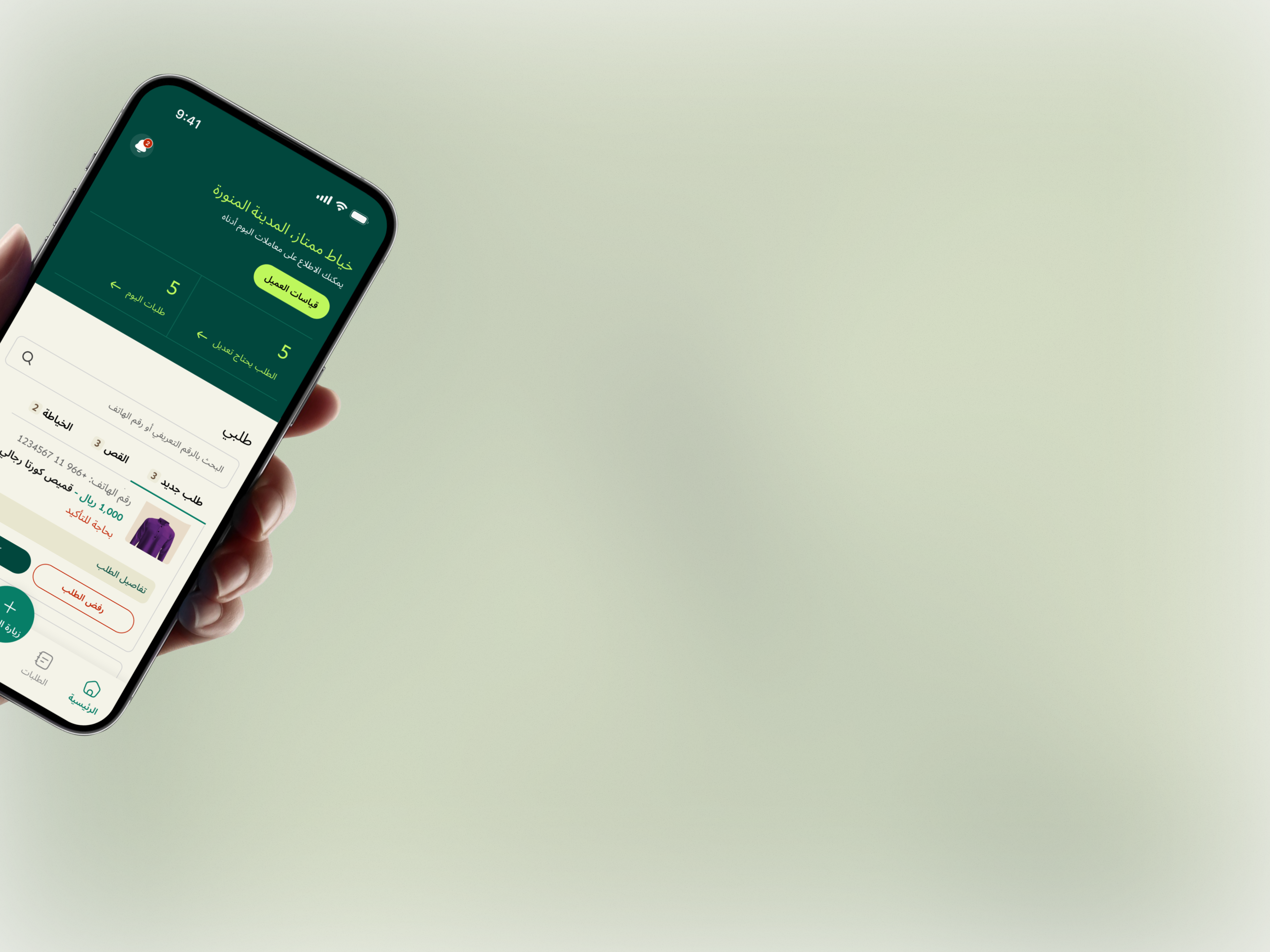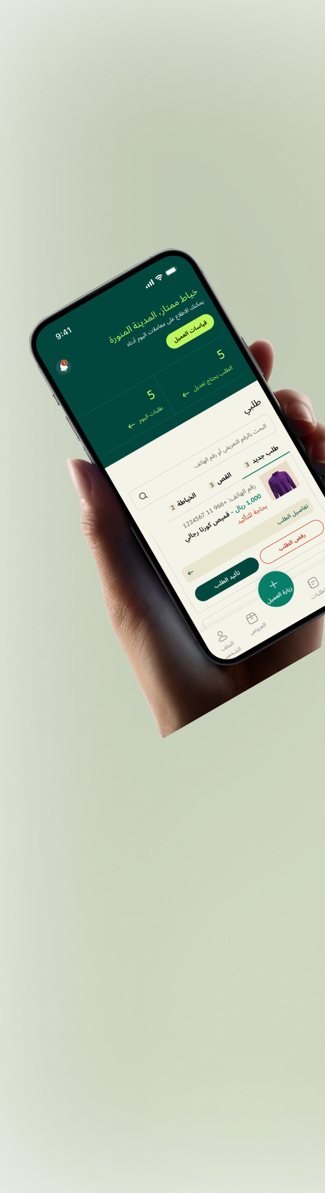 اعثر على خياطين محليين موثوقين، صمّم ثوبك حسب الطلب، وتابع خطوات الطلب مباشرة من هاتفك.